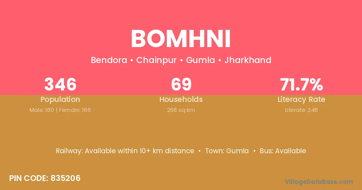 Gumla is the nearest town to Bomhni village for major economic activities