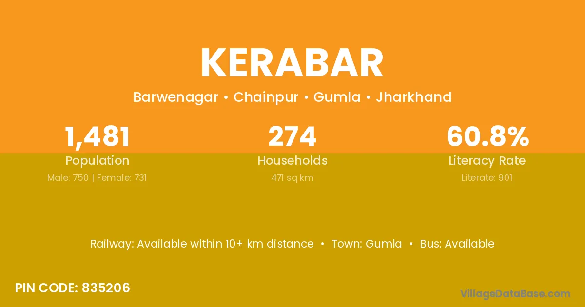 Gumla is the nearest town to Kerabar village for major economic activities