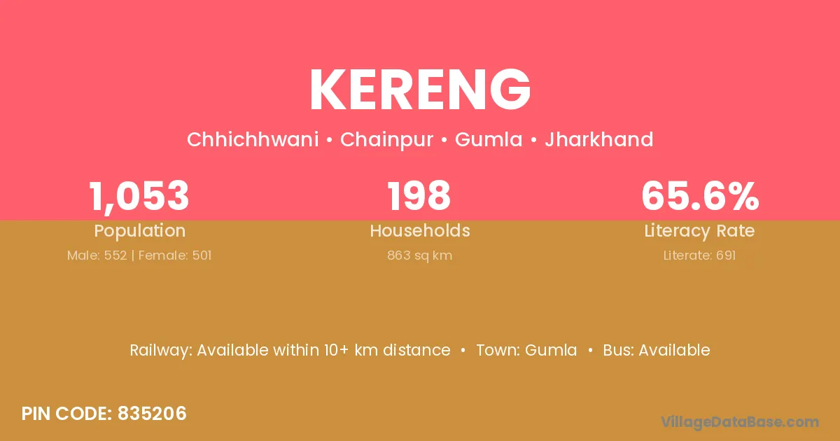 Gumla is the nearest town to Kereng village for major economic activities