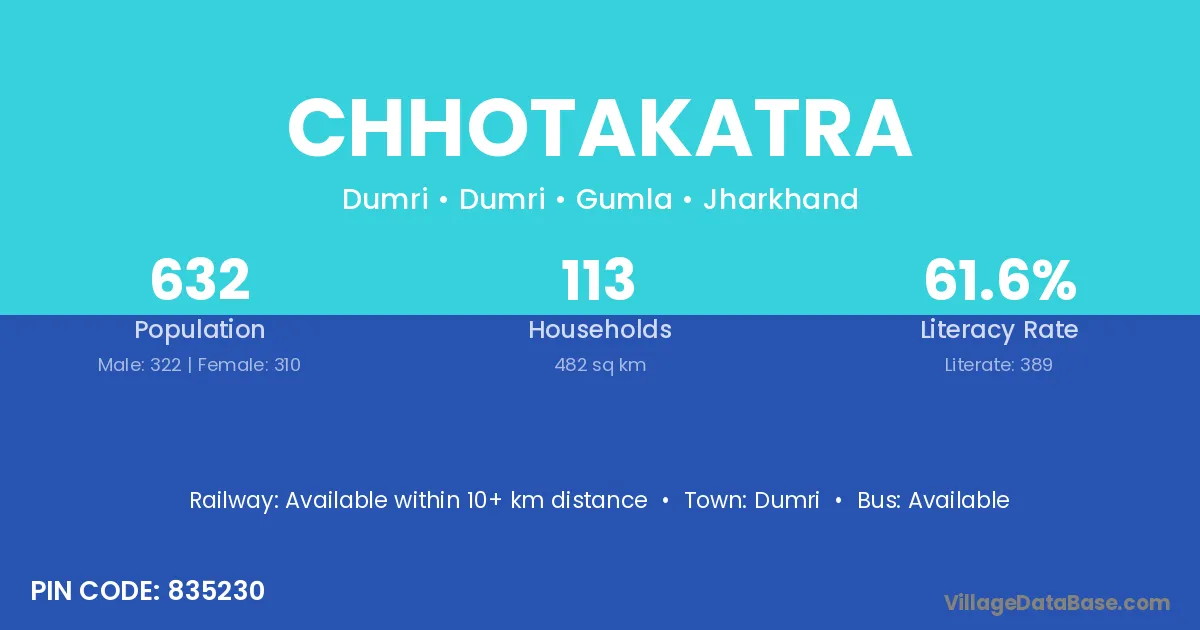 Chhotakatra village has a total population of 632 people, of which 322 are males and 310 are females.