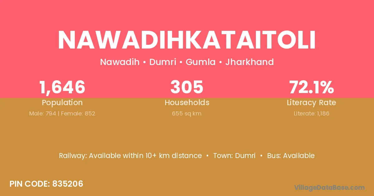 Nawadihkataitoli village has a total population of 1,646 people, of which 794 are males and 852 are females.