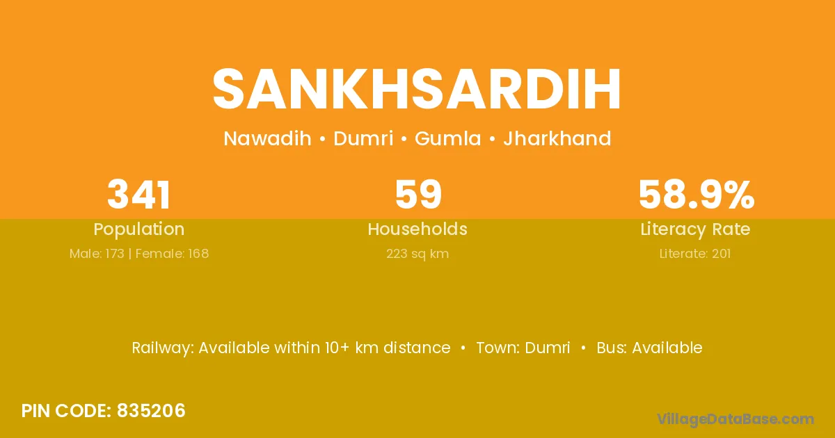 Sankhsardih village has a total population of 341 people, of which 173 are males and 168 are females.