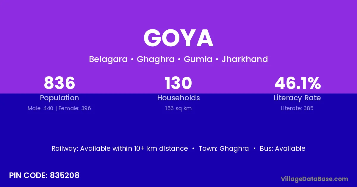 According to Census 2011 information, the village code of Goya village is 835208.