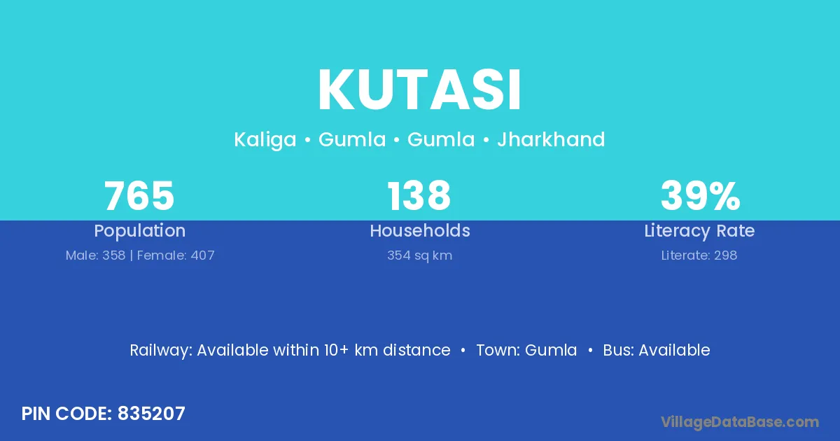 Kutasi village has a total population of 765 people, of which 358 are males and 407 are females.