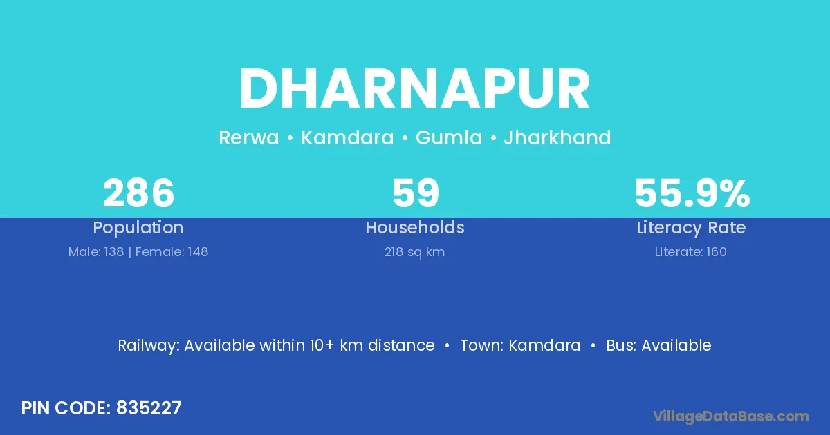 Kamdara is the nearest town to Dharnapur village for major economic activities