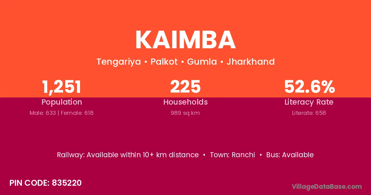 Ranchi is the nearest town to Kaimba village for major economic activities