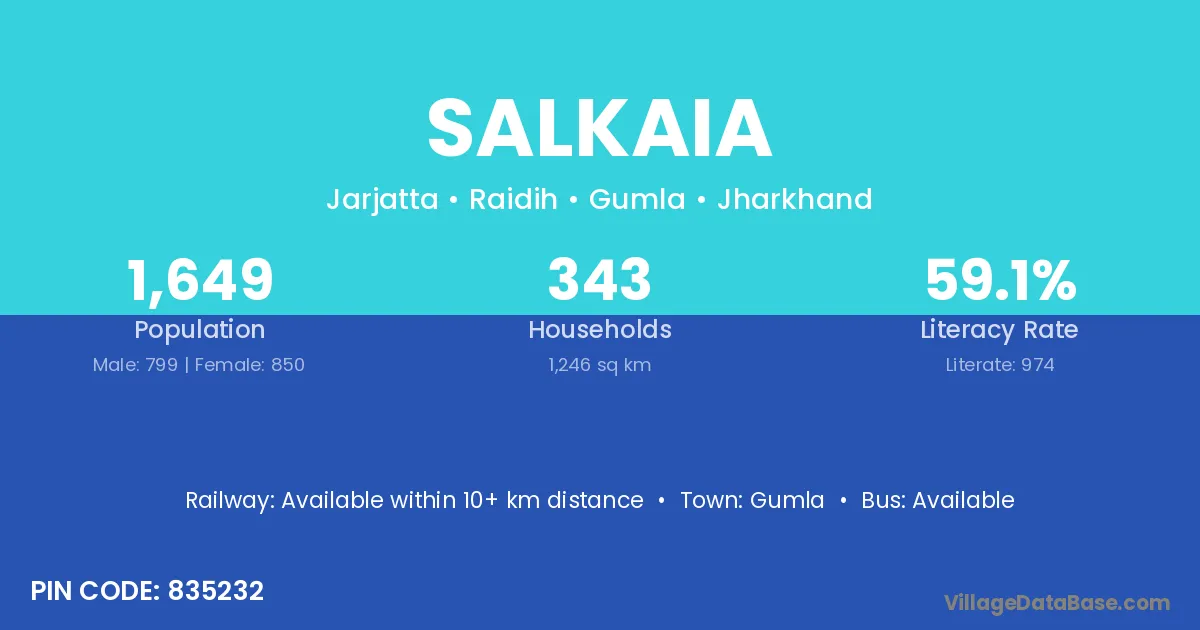 Gumla is the nearest town to Salkaia village for major economic activities