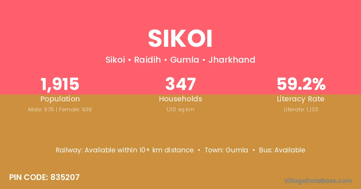 Sikoi village has a total population of 1,915 people, of which 976 are males and 939 are females.