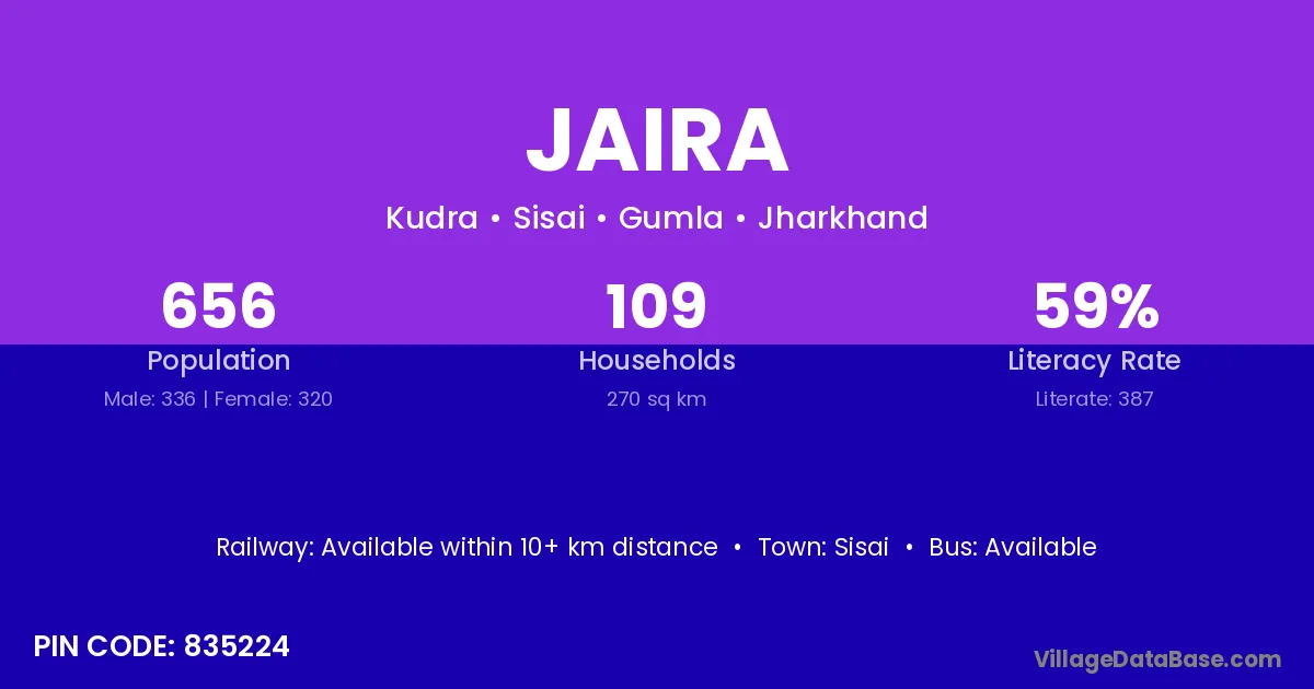 According to Census 2011 information, the village code of Jaira village is 835224.