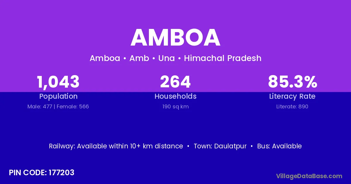 According to Census 2011 information, the village code of Amboa village is 835203.
