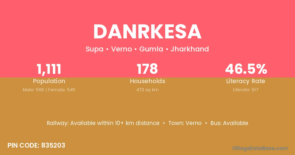 Danrkesa village has a total population of 1,111 people, of which 566 are males and 545 are females.