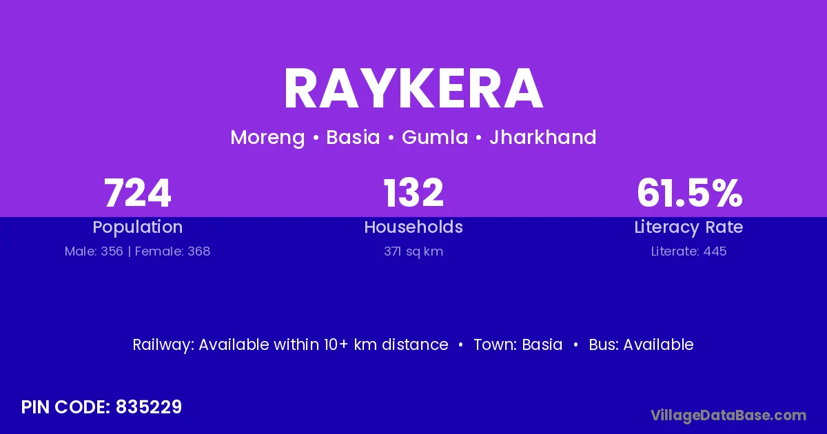 According to Census 2011 information, the village code of Raykera village is 835203.