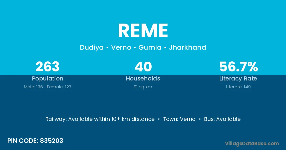 According to Census 2011 information, the village code of Reme village is 835203.