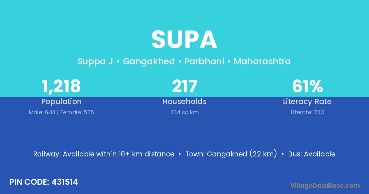 According to Census 2011 information, the village code of Supa village is 835224.