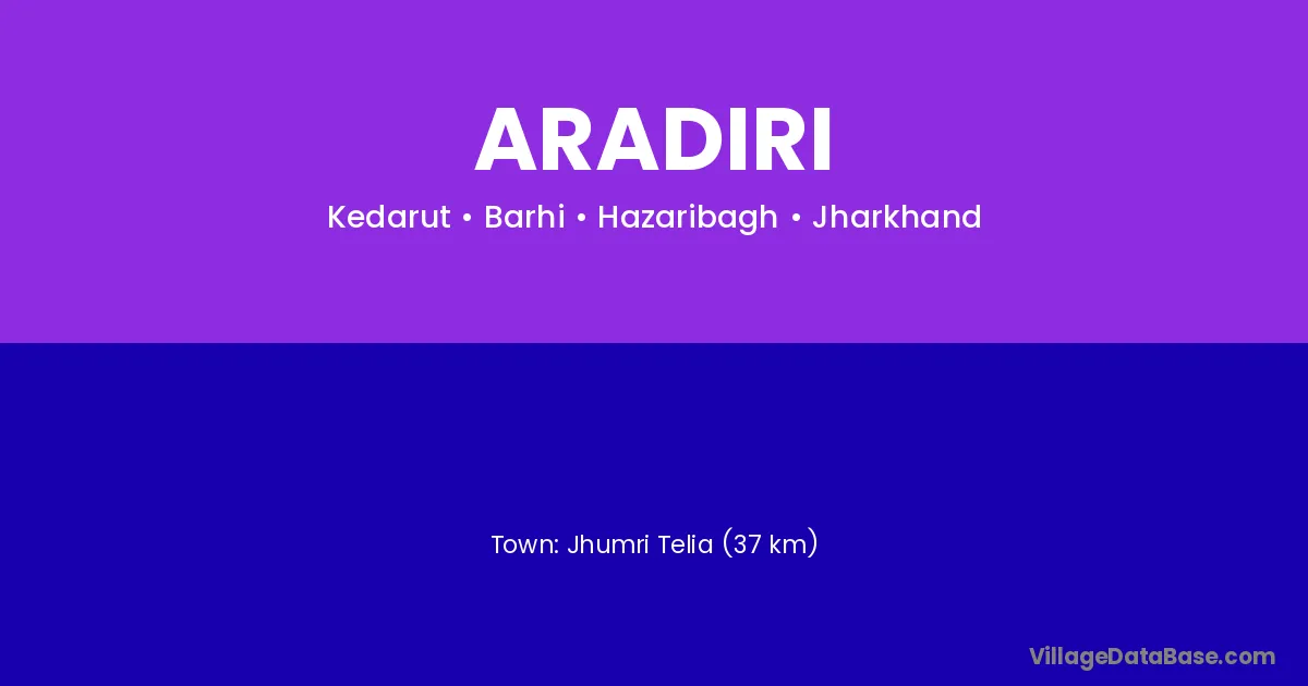 Jhumri Telia (37 km) is the nearest town to Aradiri village for major economic activities and is located approximately 37 km away.