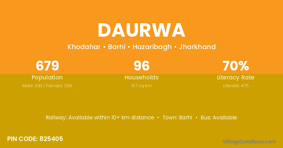 Daurwa village has a total population of 679 people, of which 343 are males and 336 are females.
