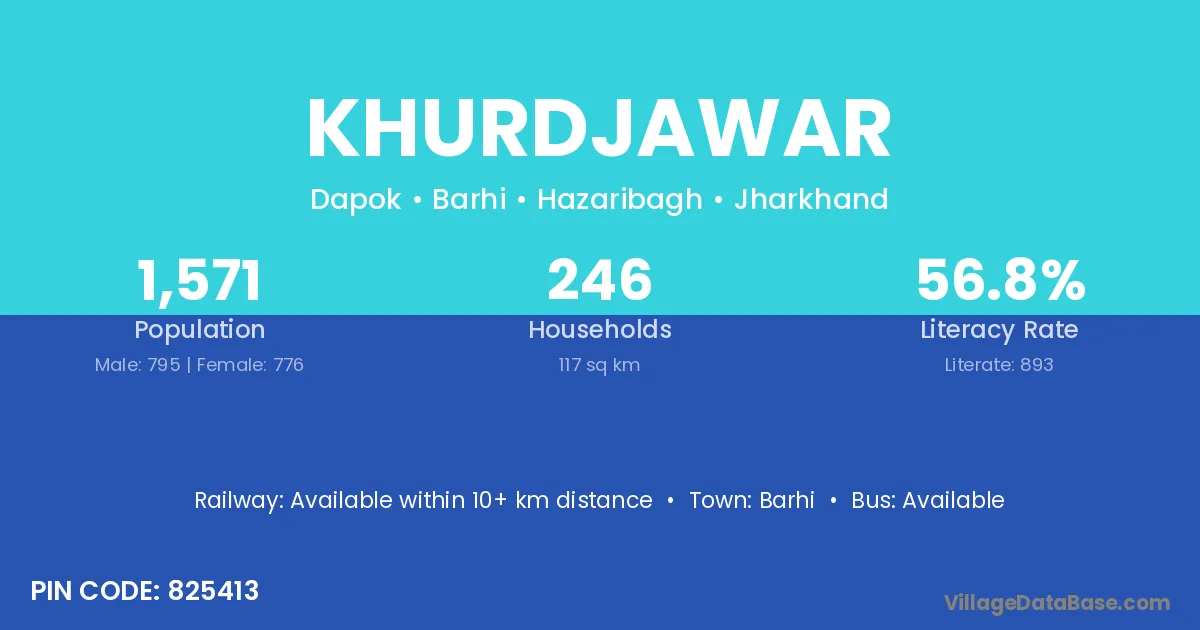 Khurdjawar village has a total population of 1,571 people, of which 795 are males and 776 are females.