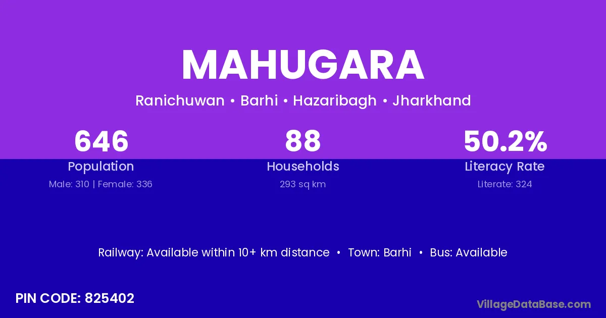 Mahugara village has a total population of 646 people, of which 310 are males and 336 are females.