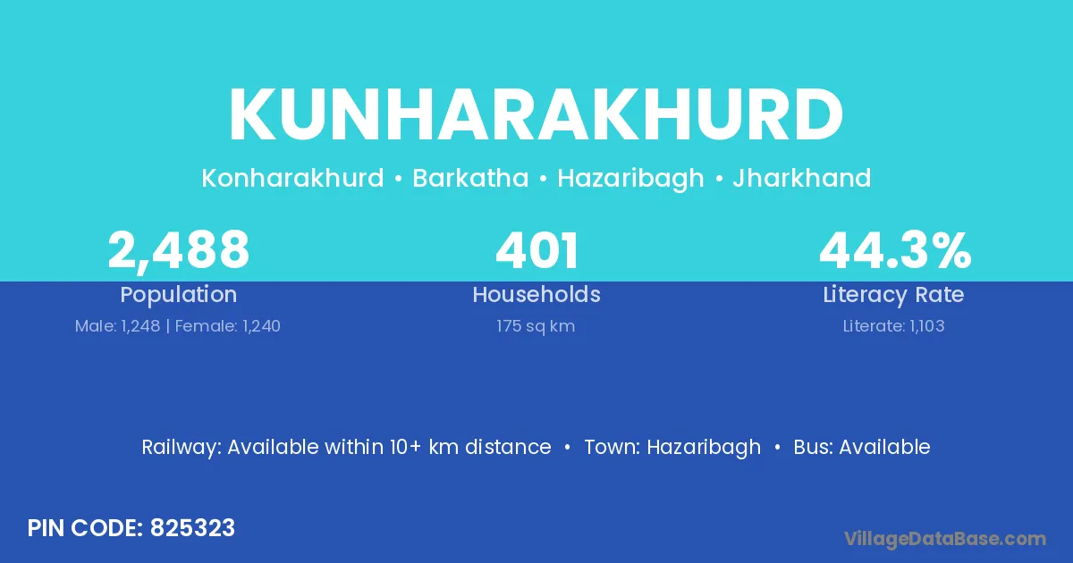 Hazaribagh is the nearest town to Kunharakhurd village for major economic activities