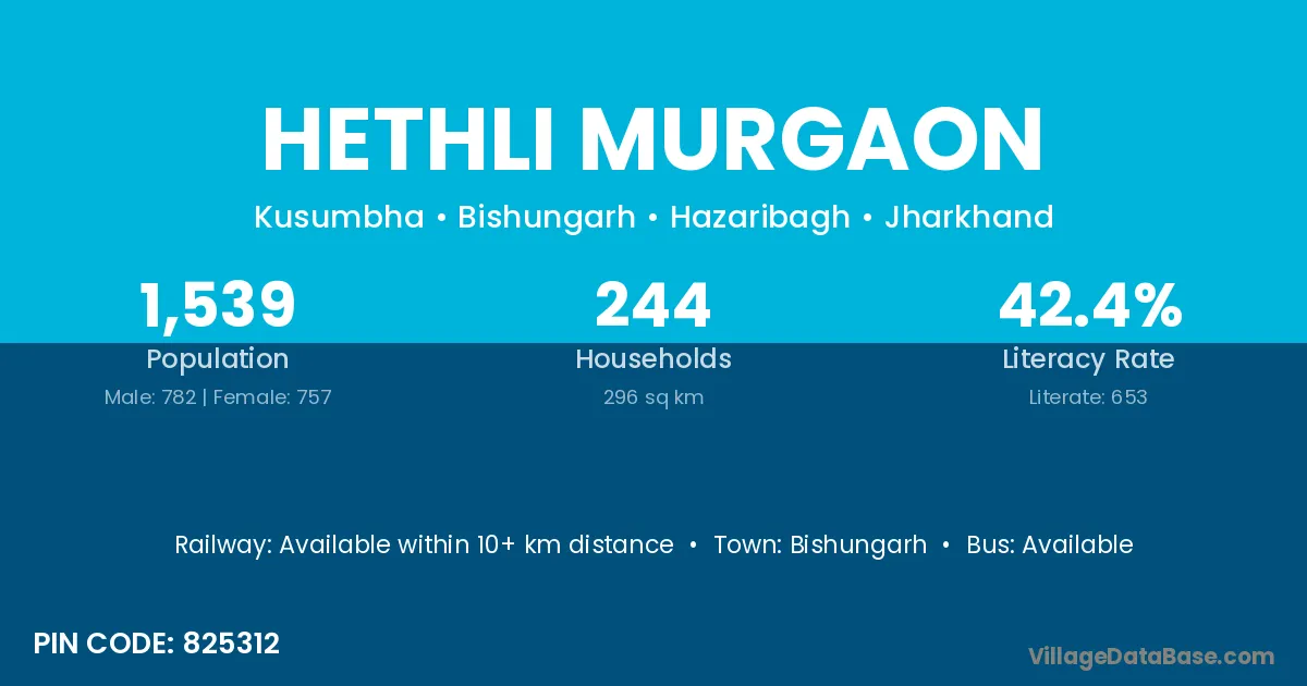 According to Census 2011 information, the village code of Hethli Murgaon village is 825312.
