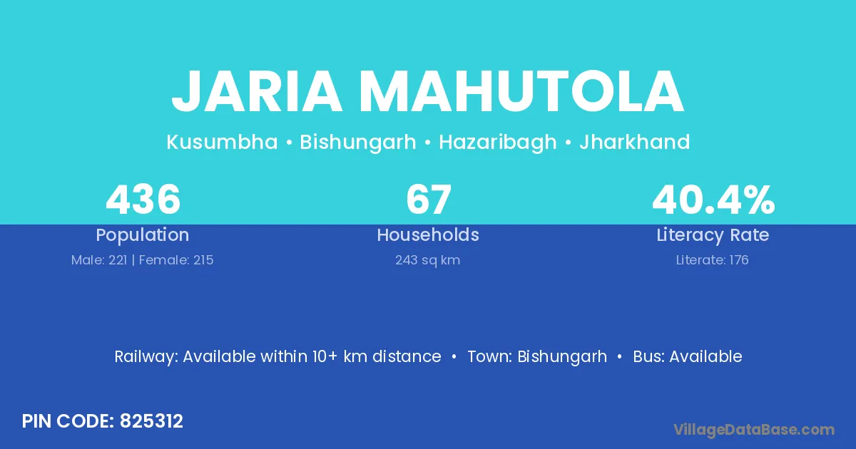 Jaria Mahutola village has a total population of 436 people, of which 221 are males and 215 are females.
