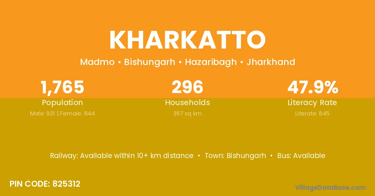 According to Census 2011 information, the village code of Kharkatto village is 825312.
