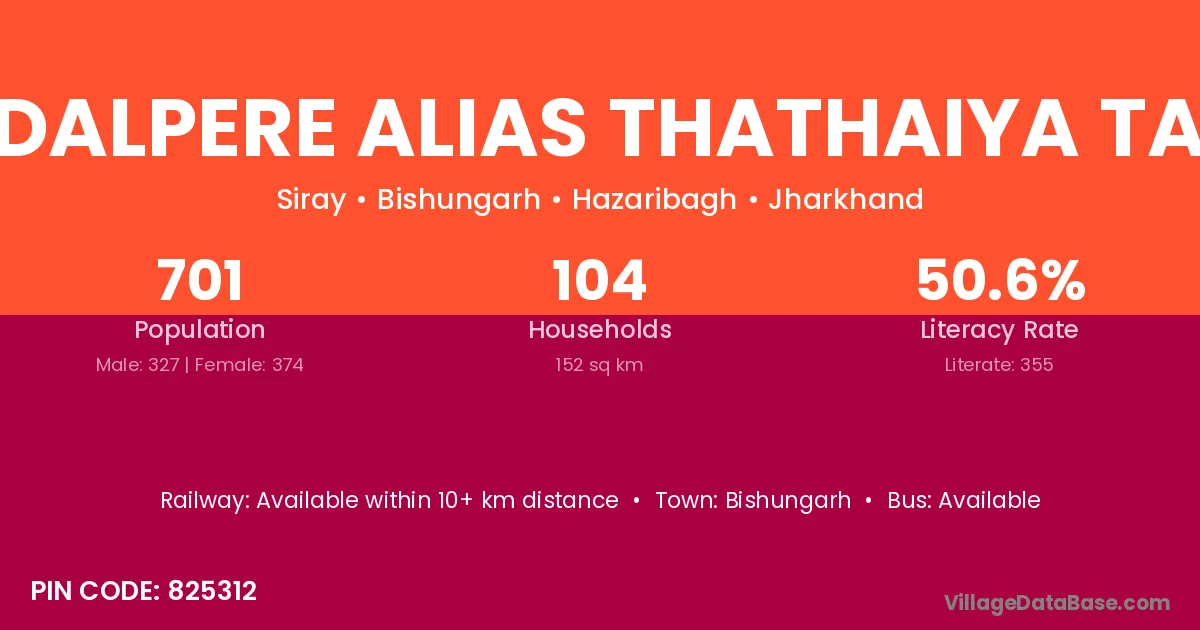 Udalpere Alias Thathaiya Tan village is located in the Bishungarh Subdivision of the Hazaribagh district in Jharkhand .