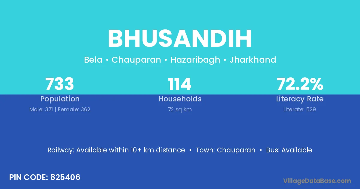 Bhusandih village has a total population of 733 people, of which 371 are males and 362 are females.