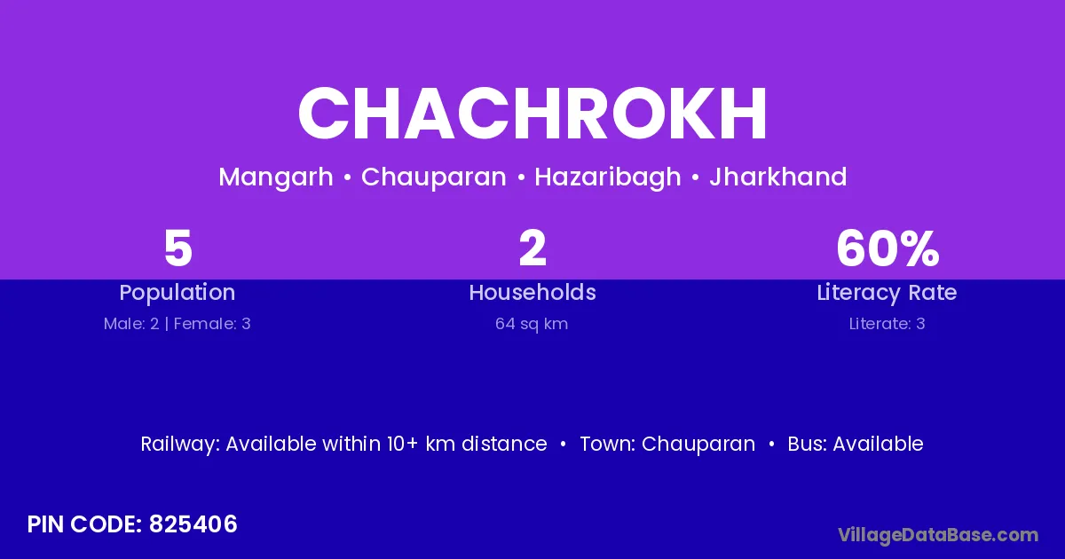 Chachrokh village has a total population of 5 people, of which 2 are males and 3 are females.