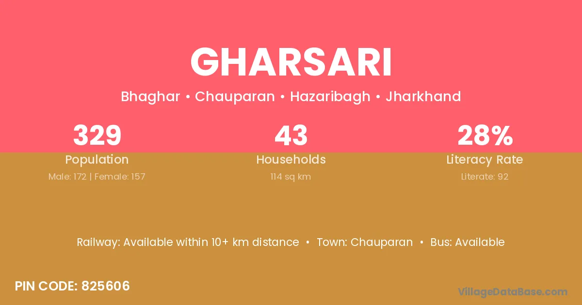 Gharsari village is located in the Chauparan Subdivision of the Hazaribagh district in Jharkhand .