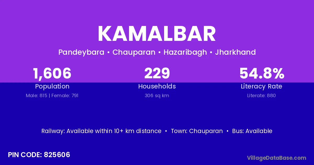 According to Census 2011 information, the village code of Kamalbar village is 825606.