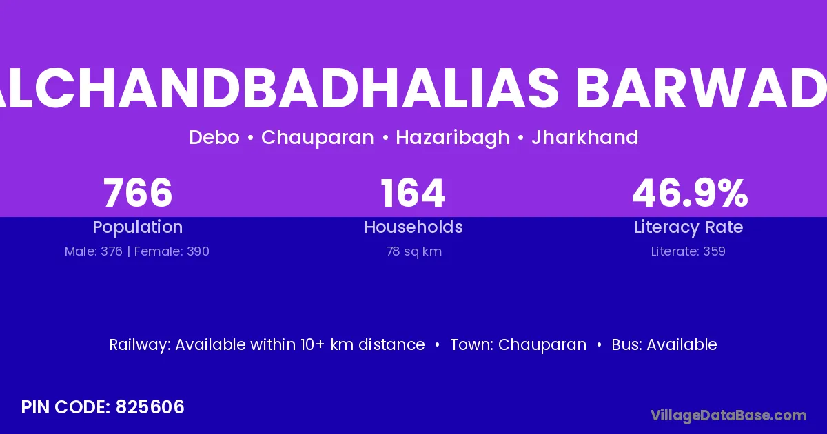 Lalchandbadhalias Barwadih village has a total population of 766 people, of which 376 are males and 390 are females.