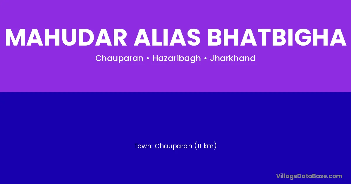 Chauparan (11 km) is the nearest town to Mahudar Alias Bhatbigha village for major economic activities and is located approximately 11 km away.
