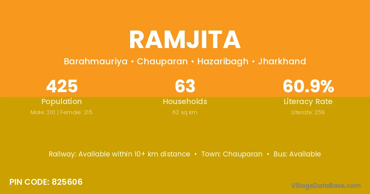 Ramjita village has a total population of 425 people, of which 210 are males and 215 are females.
