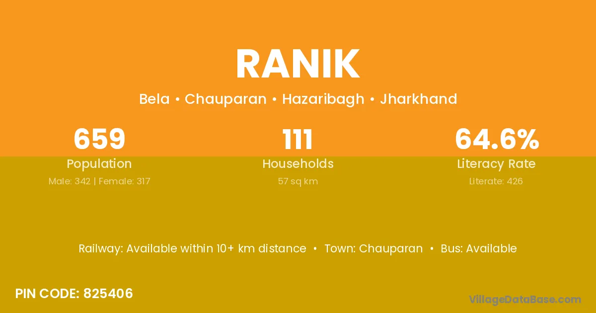 Ranik village has a total population of 659 people, of which 342 are males and 317 are females.