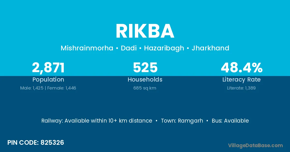 According to Census 2011 information, the village code of Rikba village is 825326.