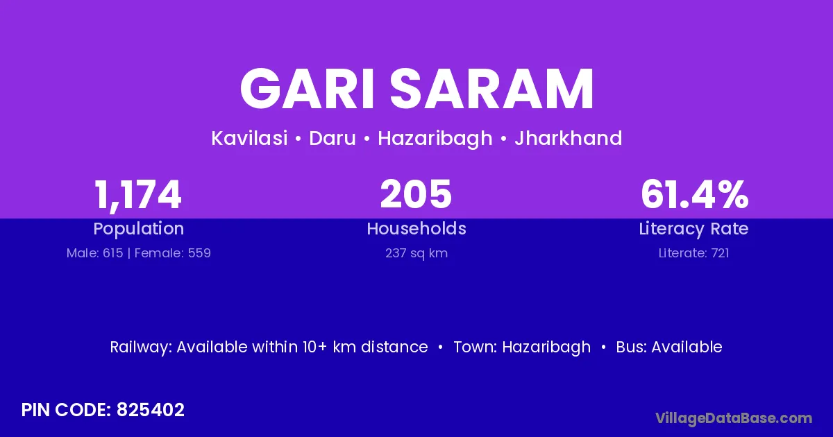 Hazaribagh is the nearest town to Gari Saram village for major economic activities