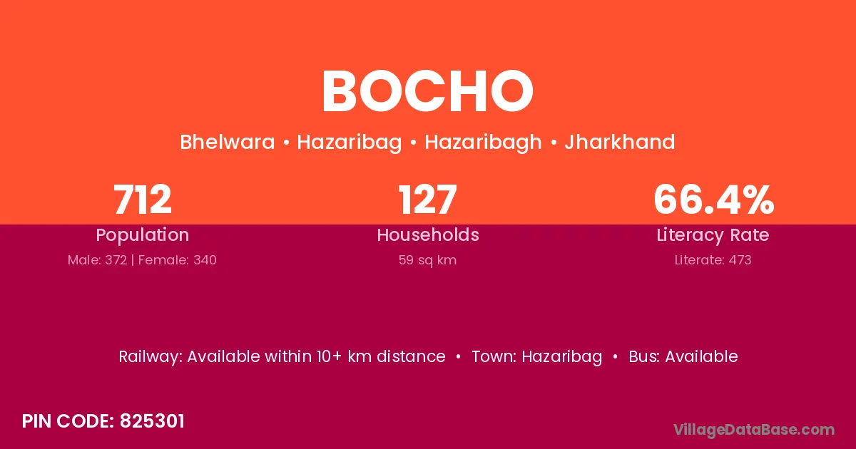 Hazaribag is the nearest town to Bocho village for major economic activities