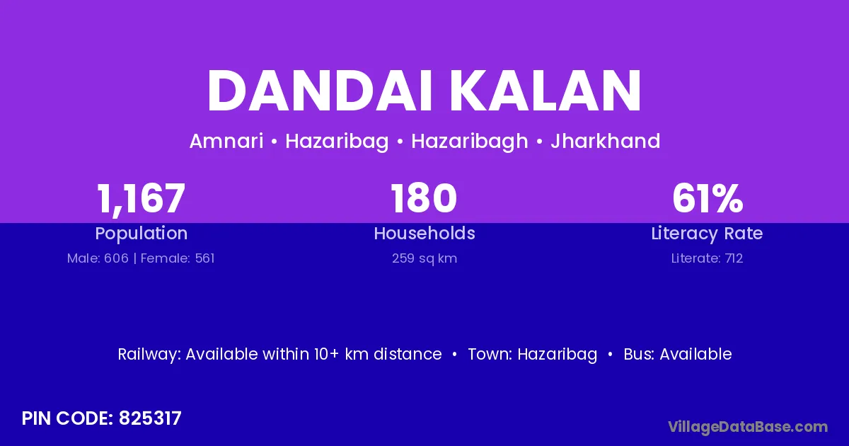 Hazaribag is the nearest town to Dandai Kalan village for major economic activities