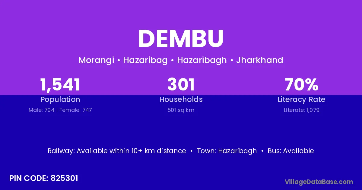 Hazaribagh is the nearest town to Dembu village for major economic activities