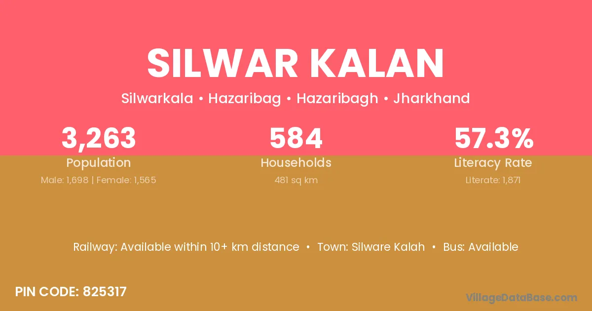 Silwar Kalan village has a total population of 3,263 people, of which 1,698 are males and 1,565 are females.