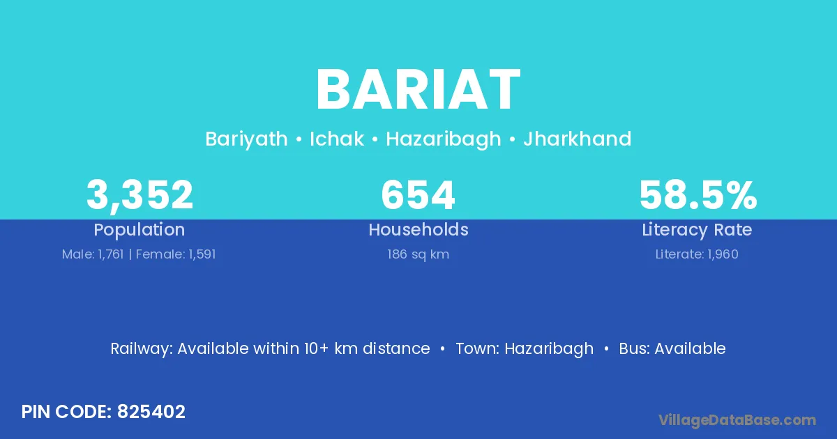 Hazaribagh is the nearest town to Bariat village for major economic activities