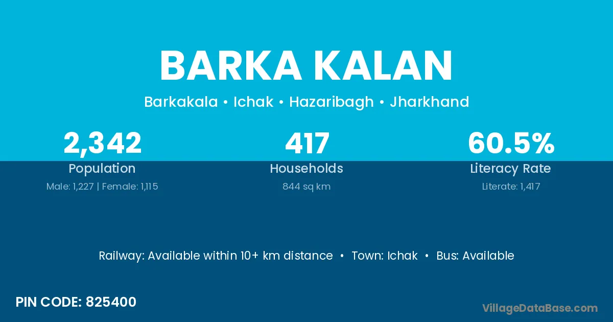 Barka Kalan village has a total population of 2,342 people, of which 1,227 are males and 1,115 are females.