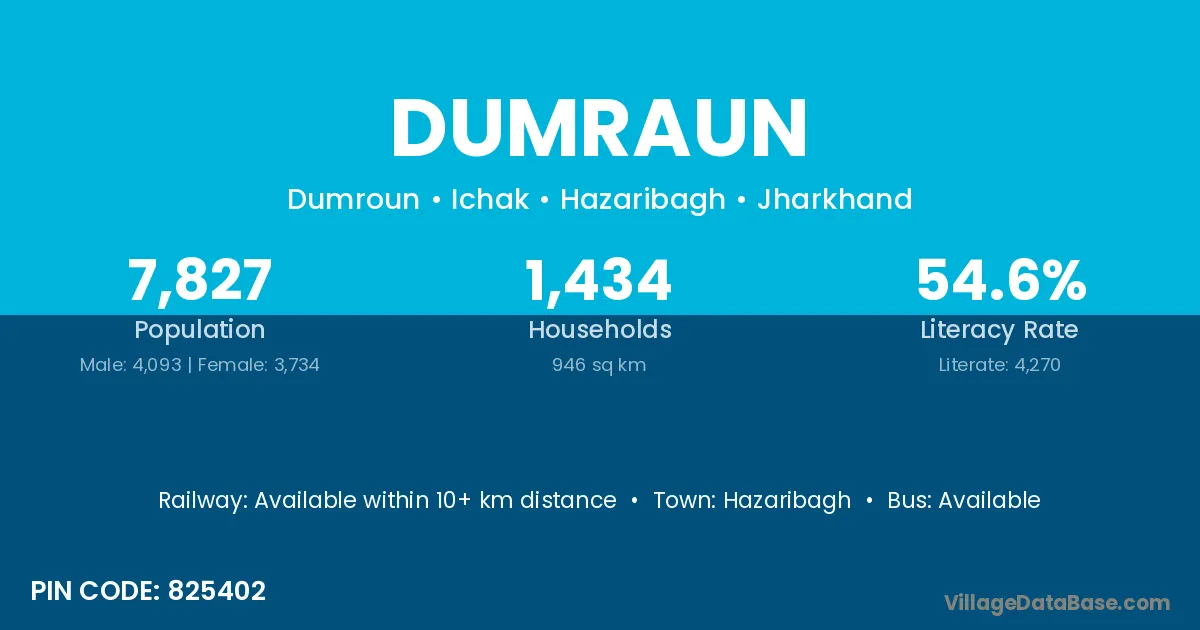 Hazaribagh is the nearest town to Dumraun village for major economic activities
