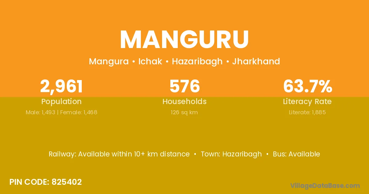Hazaribagh is the nearest town to Manguru village for major economic activities
