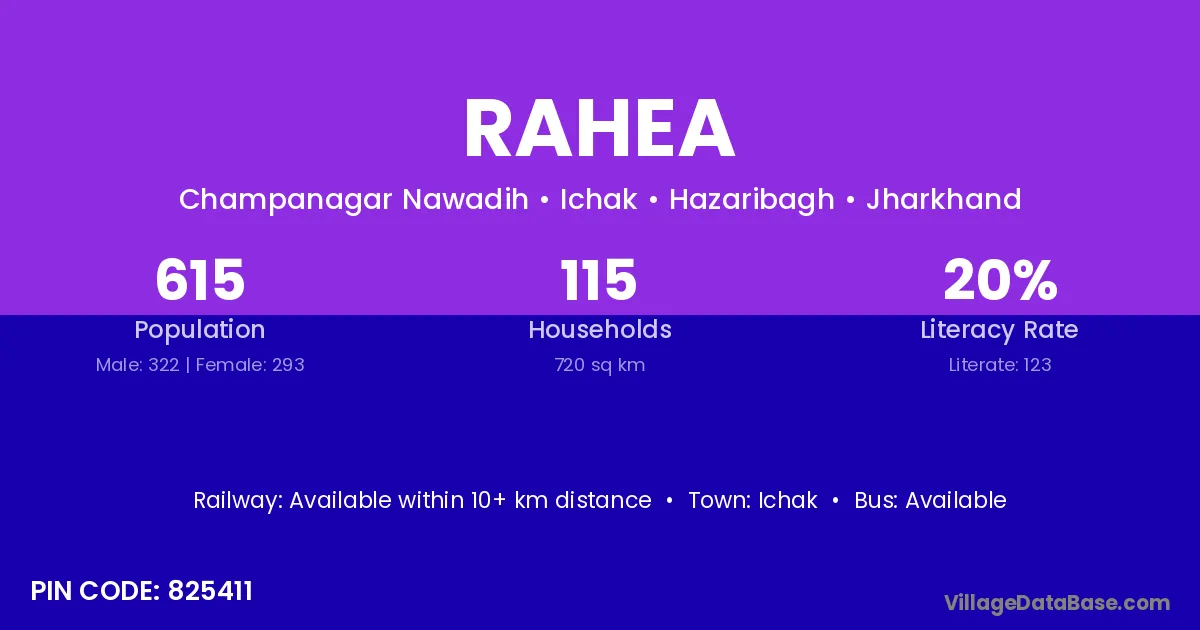 Rahea village is located in the Ichak Subdivision of the Hazaribagh district in Jharkhand .