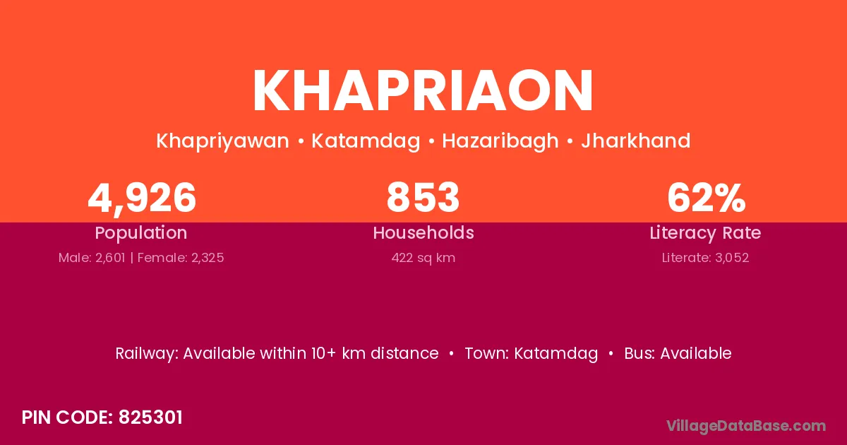 There are approximately 853 households in Khapriaon village.
