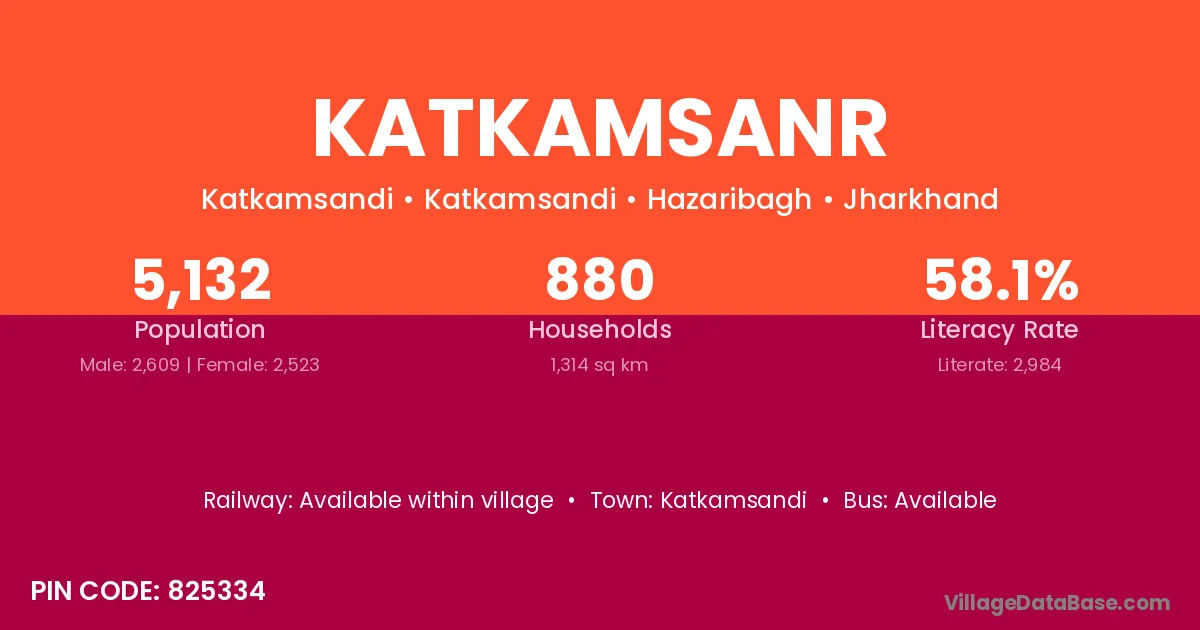 Katkamsanr village has a total population of 5,132 people, of which 2,609 are males and 2,523 are females.