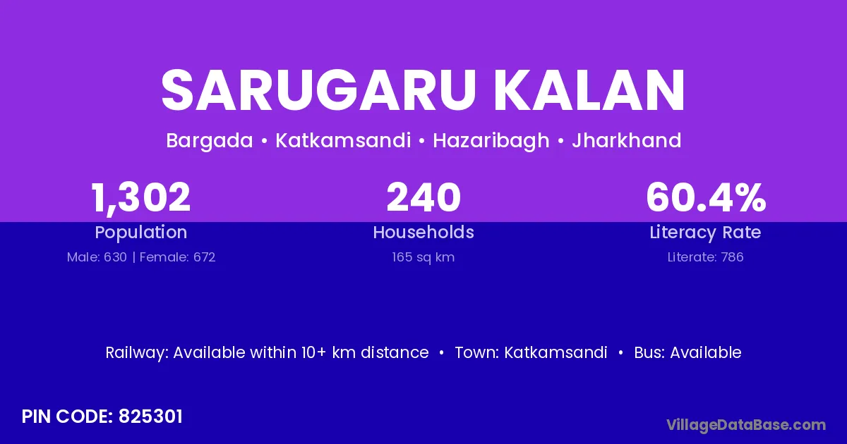 According to Census 2011 information, the village code of Sarugaru Kalan village is 825301.