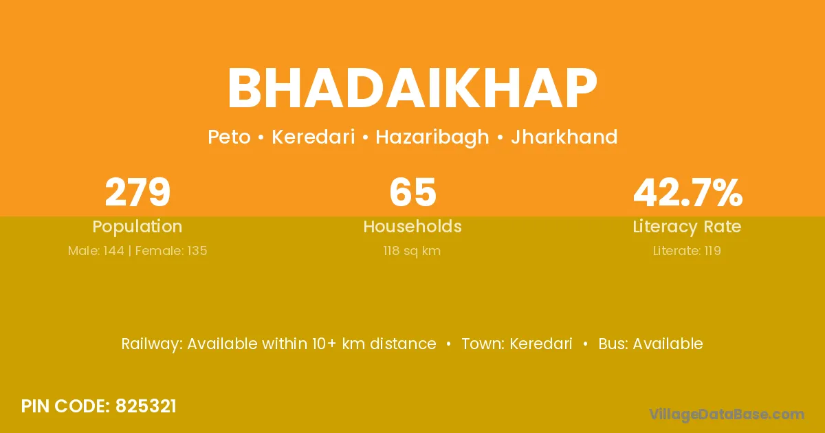 Keredari is the nearest town to Bhadaikhap village for major economic activities